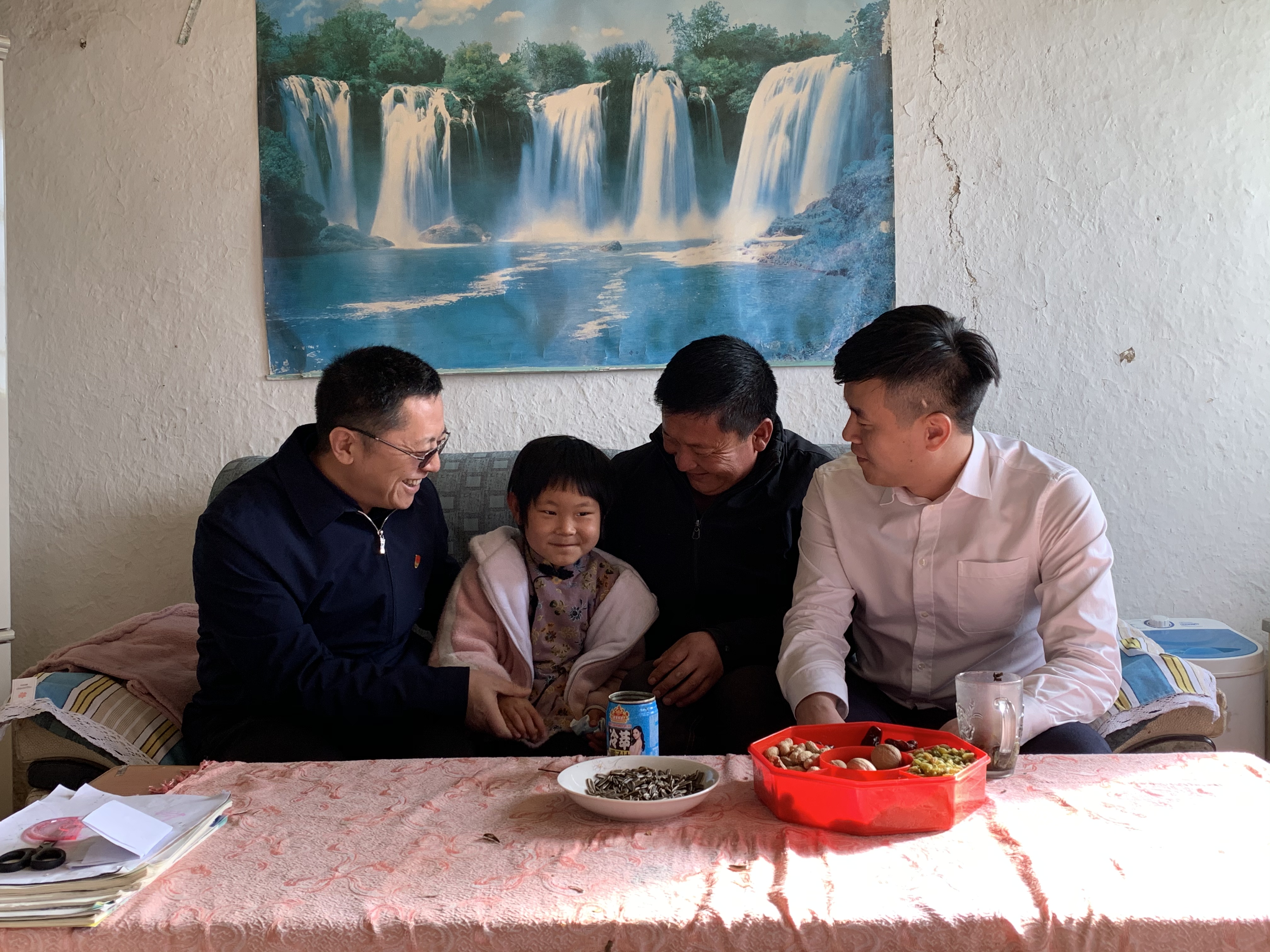 象嶼股份援疆干部倪航宏(上圖左一、下圖右一)為困難學子發(fā)放助學金,并到家中看望